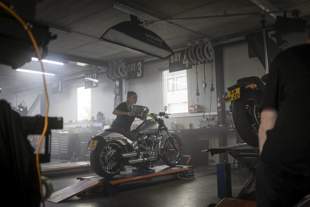 Um eine Szene natürlich wirken zu lassen, schaue ich mir immer zuerst an, was das vorhandene spannende Licht bereits macht, und ergänze, füge hinzu oder nehme Licht weg, um den gewünschten Look zu erzeugen. Das war auch bei der Szene in der Motorradwerkstatt der Fall.
