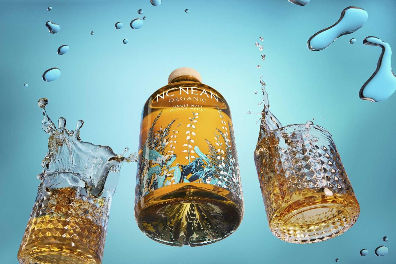 L’objectif était de capturer la bouteille de Nc’nean – avec son verre gravé de motifs botaniques uniques – suspendue dans les airs, entourée d’éclaboussures de liquide. Une telle image exige non seulement un système d’éclairage complexe et l’aide d’un assistant, mais aussi une lumière capable de figer le mouvement avec une précision absolue tout en révélant la transparence du liquide sans perdre la texture du verre.