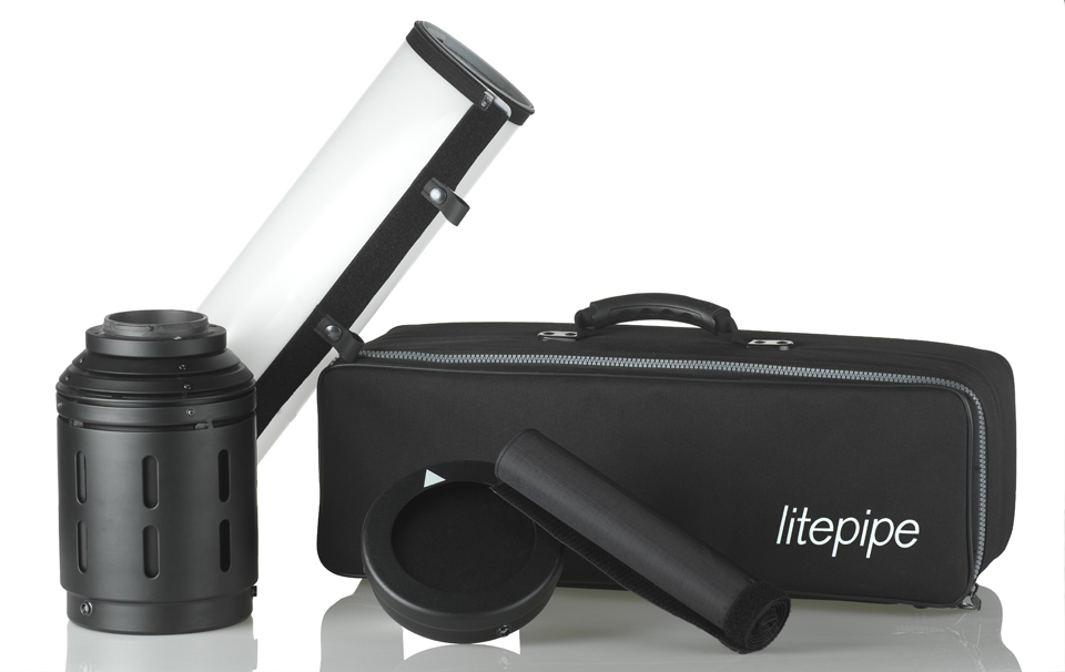 Découvrez un modeleur de lumière flash unique : le Litepipe P. Les cinq composants peuvent être assemblés en moins d'une minute, sans l'aide d'aucun outil. La pièce maîtresse de la construction est le diffuseur en forme de tube, qui peut être enroulé pour le transport.