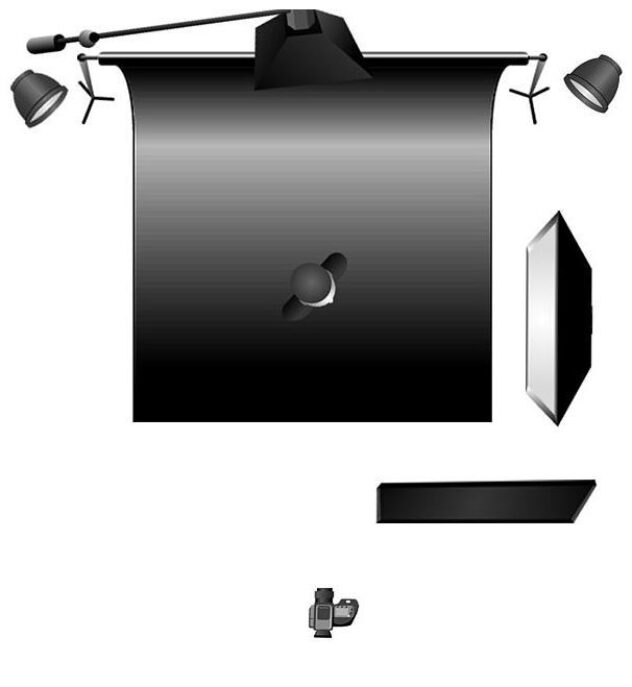 To shoot this effectively as it is multiple exposures of flahes in the same photo you need a black background so I decided to place the baseball player on black with rim lighting to cleanly separate him from the background. For this I used two P70’s from the back edge lighting him. I then needed a further light at the top to accentuate the glossy helmet the best choice for this was the 30x120 softbox to create a visible highlight in the helmet. Finally for the last flash exposure I wanted more of the front side of the player illuminated so here I used the large 120x180 softbox.