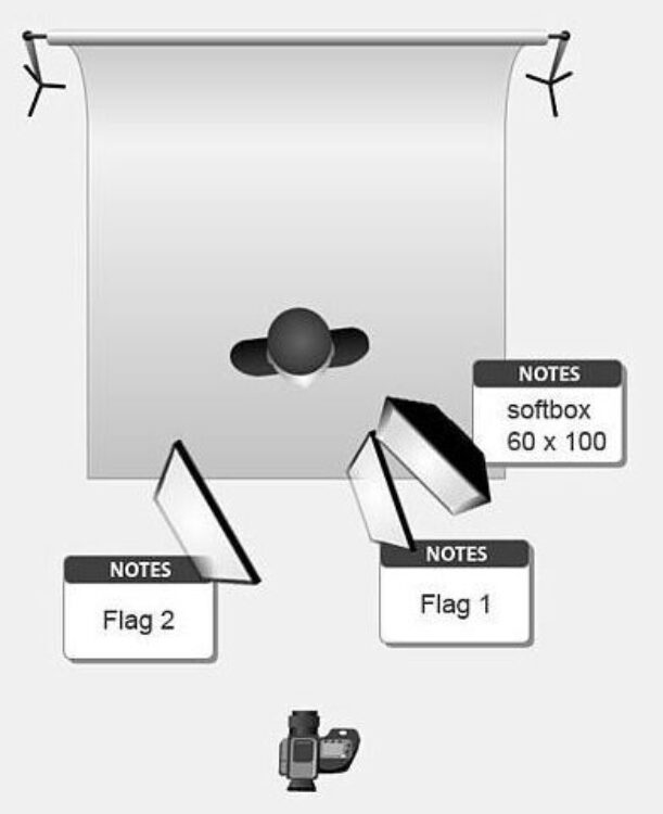 Flag 1 protects the lens from flair and at the same time it is used to fill in the right side of the picture. Flag 2 lowers the contrast on the other side.