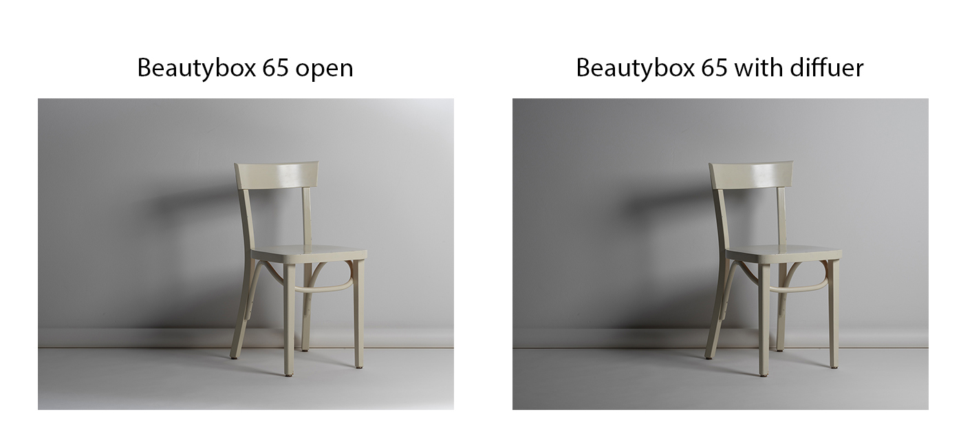 In the images below, you will see how the size of the octabox influences the light characteristic of the LED F160. You will notice that the bigger octabox 150 offers much softer light and creates less shine on the object compared to the smaller octabox 75.