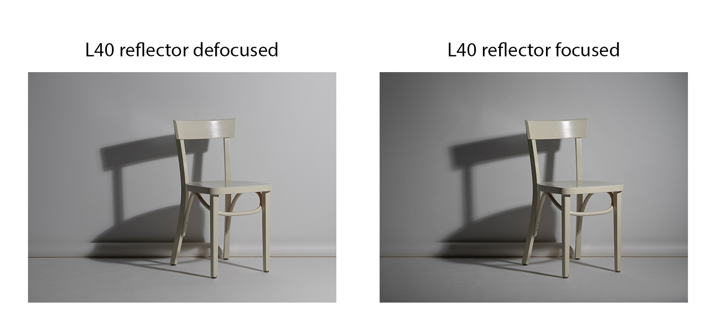 As the first light shaper, we have to mention the broncolor standard reflector L40 . The focus-ability of the LED F160 lets you choose between a rather even or a slightly center-weighted illumination.