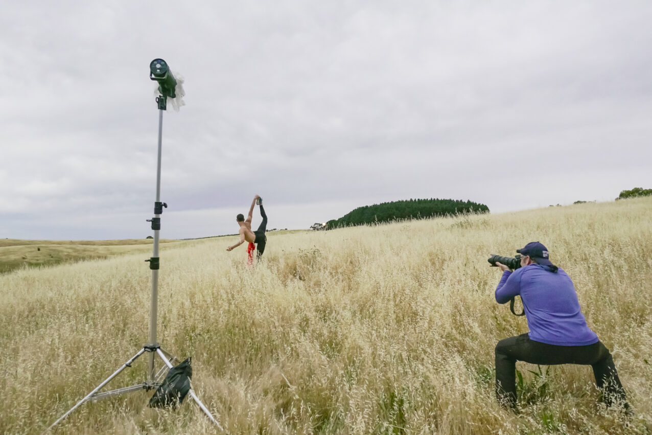 The storm I thought was coming decided to slow but in its place was an amazing storm cloud. We don’t often get cloud formations in Adelaide that look like that, so I was keen to make the most of the opportunity not knowing how long it was going to hang around. We set about capturing as many different moves as we could. This was really tricky to expose and light for as the background was getting darker and darker by the minute. While we still had sun on Pascal, but the light was literally changing by the second. It really would have been impossible if it wasn’t for the total flexibility of the broncolor ecosystem from adjusting the output. At one stage I was adjusting the light output almost after every shot. Thanks to the reliability of firing, I never lost a shot through a miss fire and the colour temperature was consistent through the whole shoot.