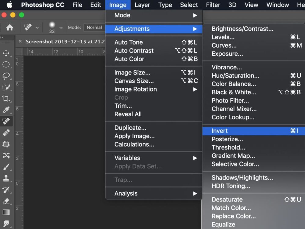 Thereafter, one lays the inverted level over the background level of the opened original image: