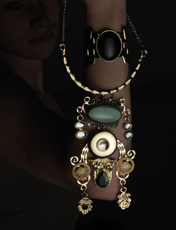 This photograph was shot at 17 joules and f-stop 11, which shows the fantastic amount of high light output the Staro produces through the centre-orientated light. It gives the necklace life and the desired reflections while leaving the skin matte and dark.
